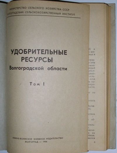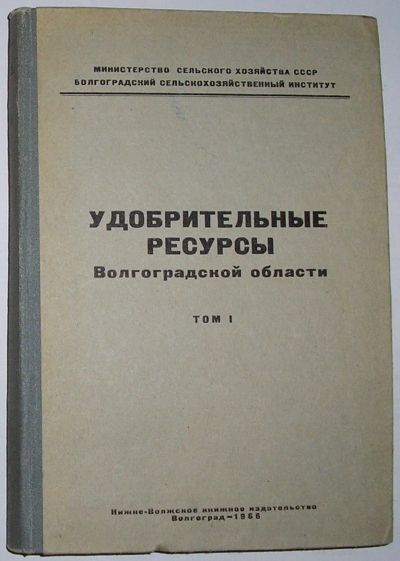 Удобрительные ресурсы Волгоградской области. Том 1-й. Волгоград. Нижне-Волжское книжное издательство. 1966 г.