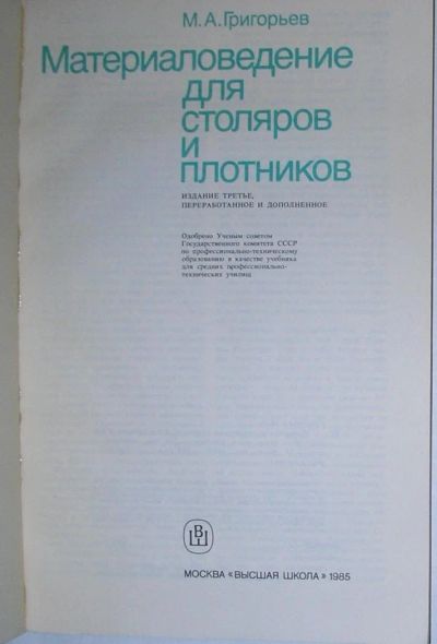Материаловедение для столяров и плотников. Григорьев М.А. 1985 г.