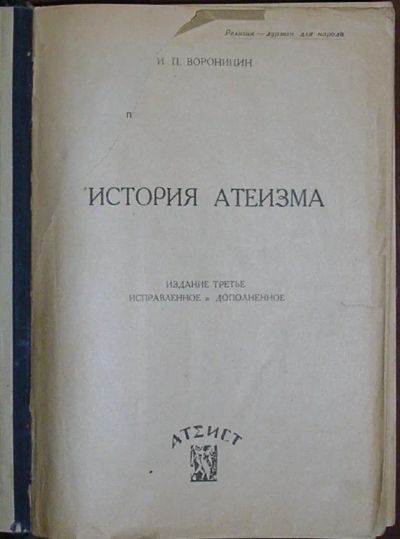 История атеизма. Вороницын И. П. 1930 г.